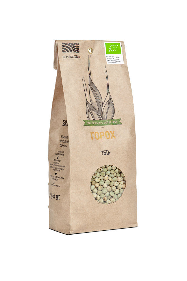 Сертифицированный по органическому стандарту ЕС горох «Чёрный хлеб» (EU 834/2007) является товаром высшего качества. Зерно гороха выращено в экологически благоприятном районе Тульской области. Это источник клетчатки и белка для вегетарианцев. Семена гороха можно замочить и вырастить из него полезную микрозелень. Проростки гороха обладают всеми свойствами зерна, усиленными в несколько раз. Их используют в коктейлях, салатах, запеканках тушёных и горячих блюдах. Так же, как и колотый, цельный горох хорошо разваривается и подходит для приготовления горохового супа с копчёностями. Производитель гарантирует, что покупатель приобретает зерно, которое выращено в почве, свободной от химических удобрений глифосата и гормонов. Органический горох — это лучшее, что вы можете поставить себе на стол.