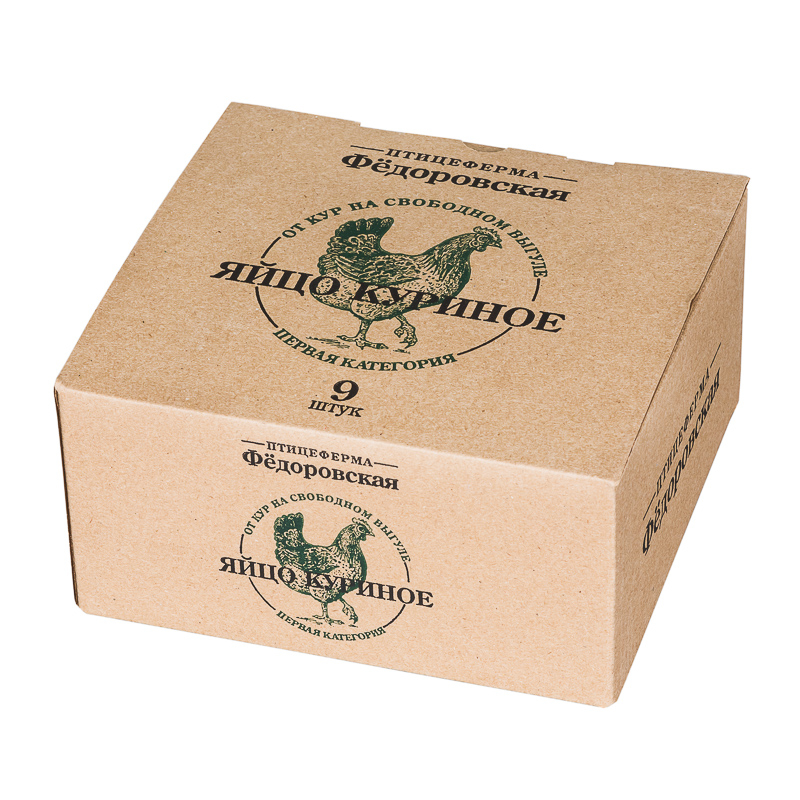 Яйцо куриное, Свободный выгул, 1 кат, Птицеферма Федоровская, 9 шт